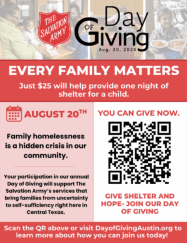The Salvation Army Austin has served low-income families in Central Texas since 1889.